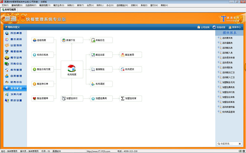 连锁及配送管理,化繁为简: ●完备的连锁管理及配送功能,直配、配入配出、调拨等多种配送手段、配送价格管理,并能确保各店与总店的数据一致性;