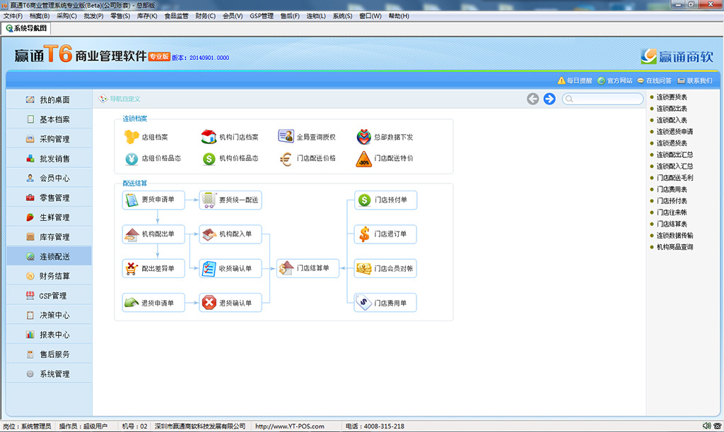 针对商业、医药、家电管理,T6系列更专业: 1.连锁多层架构:总部分公司分店; 2.移动...
