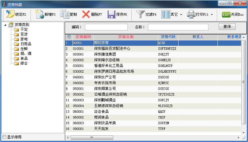 3. 在下面的选项中您可以输入该供应商任何其它您想输入的信息,这些信息包括该供应商的名称、联系人、联系电话、营业证书、联系地址、帐户信息、货商备注以及其它信息。
