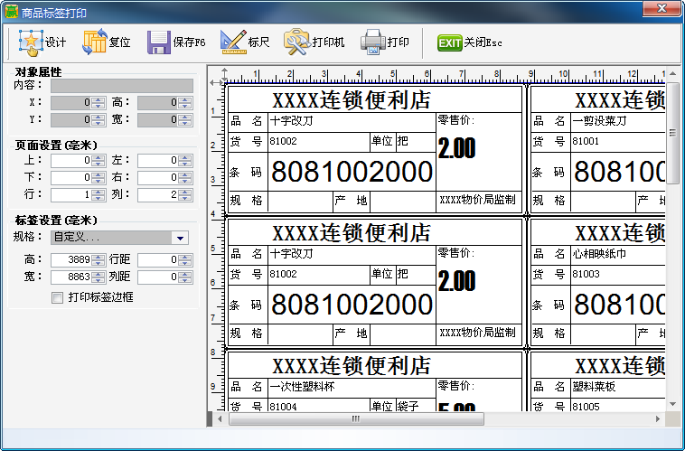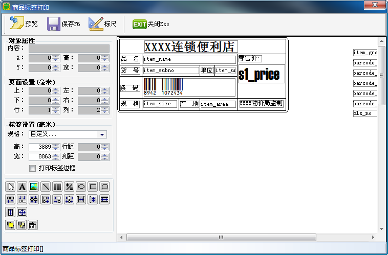 ①点击[打印标签]进入商品价签设计窗口,如图: