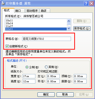 格式描述:随便输入你可以辨认的名称,如:自定义纸张17X12。