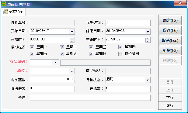 ![]() 操作方法:先新增特价单,再在下面新增赠送明细。