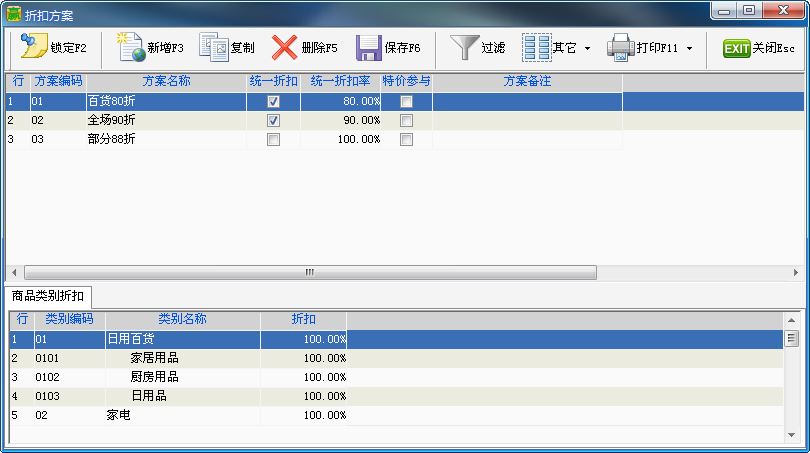用于定义会员针对于商品类别的折扣,支持全场统一折扣和类别单独折扣。