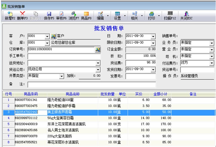 销售管理系统主要用来处理与企业的销售活动相关的业务内容。与客户磋商时相关的报价与销售订单进行归集;销售时在批发销售单中与相对应的订单及时反映库存的减少与应收款项的增加,更可以管理一单多仓库,负数销售完成换货销售业务(以及回收瓶子,销售啤酒等业务,简化业务流程);