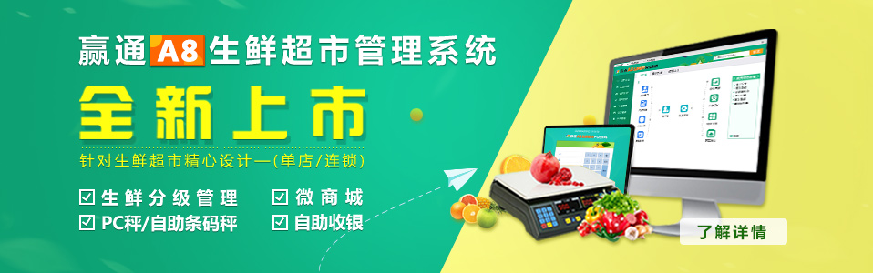 赢通A8生鲜、专卖管理系统,新功能正式上市! 赢通A8商业软件新增优势: 一、数据结构优化设计,由其针对于大数据的优化 A8生鲜专业版:增加了生鲜分级、PC秤/自助条码称、自助收银功能 A8专卖专业版:增加广告屏、标签打印...