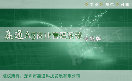 经过第四个内测版,A5专业测试版终于上线了! 功能更强,内容更全面,完美导航。 赢通管理软件可用于各种商业企业、事业单位,为用户提供高质、快速的解决方案! 赢通软件长期致力于零售流通业、商业自动化与餐饮娱乐行业信息化技术研究开发与推广应用,是全国零售业软件专业开发商,也是目前国内零售流通信息化解决方案的领导供应商和服务商。赢通拥有自主知识产权的"赢通"全系列商务管理软件,并以此为核心,提供连锁超市、便利店、百货、购物中心、连锁品牌专卖店、分销、物流和餐饮娱乐业专业解决方案,以及管理咨询、项目实施、系统集成、技术支援等全程服务。 2010是赢通重要的一年,除了A5商业产品线的继续完善,包括A5商业标准版、A5商业批发版。另外A5专卖店版、A3水果店版、A3烘焙版也正在研发之中。继新版上市,在市场上为商业流通行业添加新的活力。赢通软件致力于商业流通行业信息化发展,软件产品以行业细化、多样化、用户体验为市场主导,给商业流通行业朋友提供更加优质的细分化管理软件产品。 赢通A5商业管理系统专业版,暂不提供下载,请与客服联系!