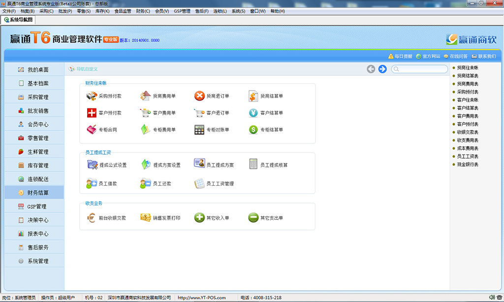 2015年,是赢通软件重要的一年,除了原有产品A5系列(包括A5商业、服装、医药、烘焙、母婴、农资、化妆品、连锁专卖店、便利连锁店、大连锁管理系统、触摸屏、小商通)、T5系列(包括A5商业、烘焙、母婴、农资、化妆品、大连锁管理系统、触摸屏,针对大型连锁压力测试优化、生鲜管理优化)、A6系列(包括A6服装管理系统)、T6系列(包括T6商业版、T6医药版、T6家电版)部分产品已正式上市、I7系列(包括I7餐饮专业版,采用新平台研发,支持多国语言)、I8系列(包括I8餐饮、快餐、酒吧,采用新平台研发,支持多国语言、速度更快、前台排队、微信订餐等)不断升级、推出新品后。 赢通软件产品面向大型连锁商场、超市、便利店、专卖店、服装、医药、烘焙、母婴、农资、化妆、百货公司、综合性商场、家电、中餐、西餐、快餐、酒楼、休闲娱乐等行业,提供个性化、美观化、形象化、连锁化、集团化的需求。奶茶、送水、洗衣系统相关功能正式发布,欢迎在线试用,A5、A6、I7大连锁支持直传方式(首创包码概念,数据传输确保不掉一个包),A5、T5、A6、T6、I7、I8新版本全面兼容SQL2000/05/08,适合各类型企业使用,更方便企业业务的拓展,满足企业发展的需求。赢通软件斥巨资引进2名美女设计师,重构T5商业、T6商业、I8餐饮UI(用户界面)、按钮及图标,后台风格、彩页、包装,全新的餐饮I8系列产品即将正式上市、T6系列产品正在火热销售中!(界面详见官网微博)。 新一年,赢通将继续全国的战略部署,为用户提供一流的服务,开发更好的管理软件,推出更好的解决方案而努力! 赢通T6商业管理系统,请在在线试用中进行试用,如不会操作请与客服联系! 赢通T6商业管理系统专业版主界面: ![]() ![]() ![]() ![]() ![]() ![]() ![]() ![]() ![]() ![]() ![]() ![]() ----------------------2015-04-15 赢通软件管理团队 (责任编辑:赢通软件管理团队) |