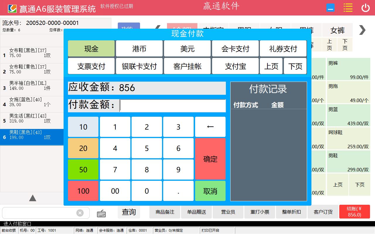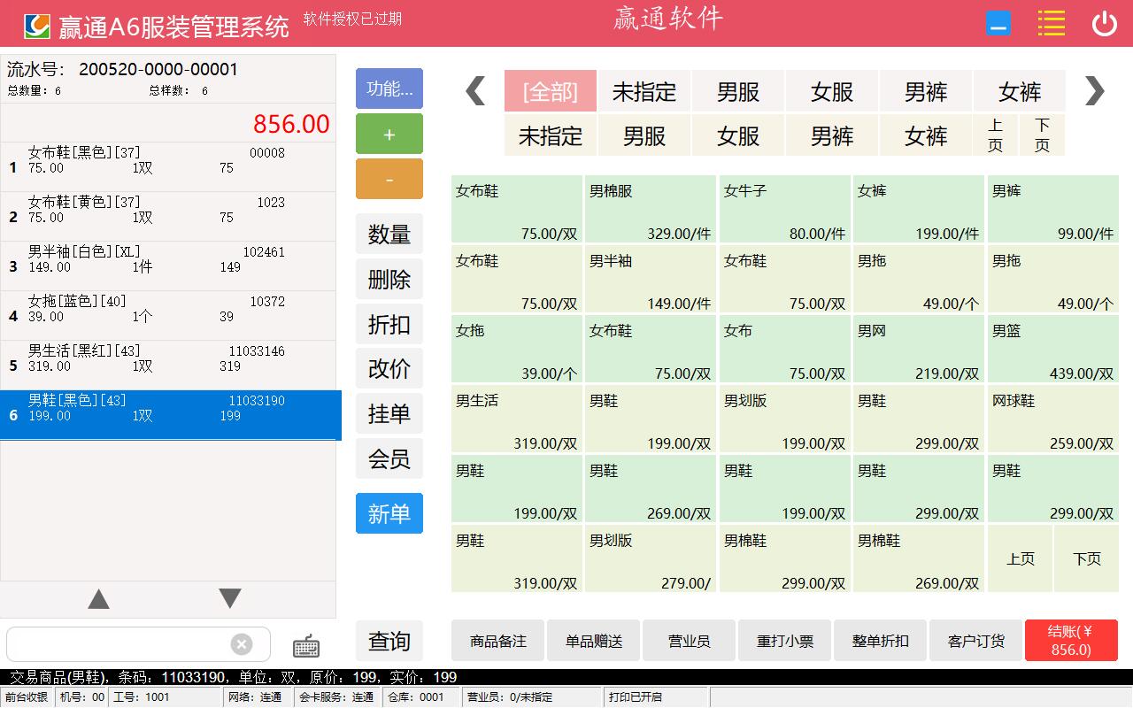 赢通A6服装管理系统旗舰版产品特色: ★与A6同数据结构,可以直接恢复A6其它版本的备份帐套完成数据升级。 ★全新设计的交互式界面,包括后台界面,前台触屏界面,前台自助收银界面。 ★增加数据远程访问服务,对于远程连接更高效,稳定可靠不易断线。