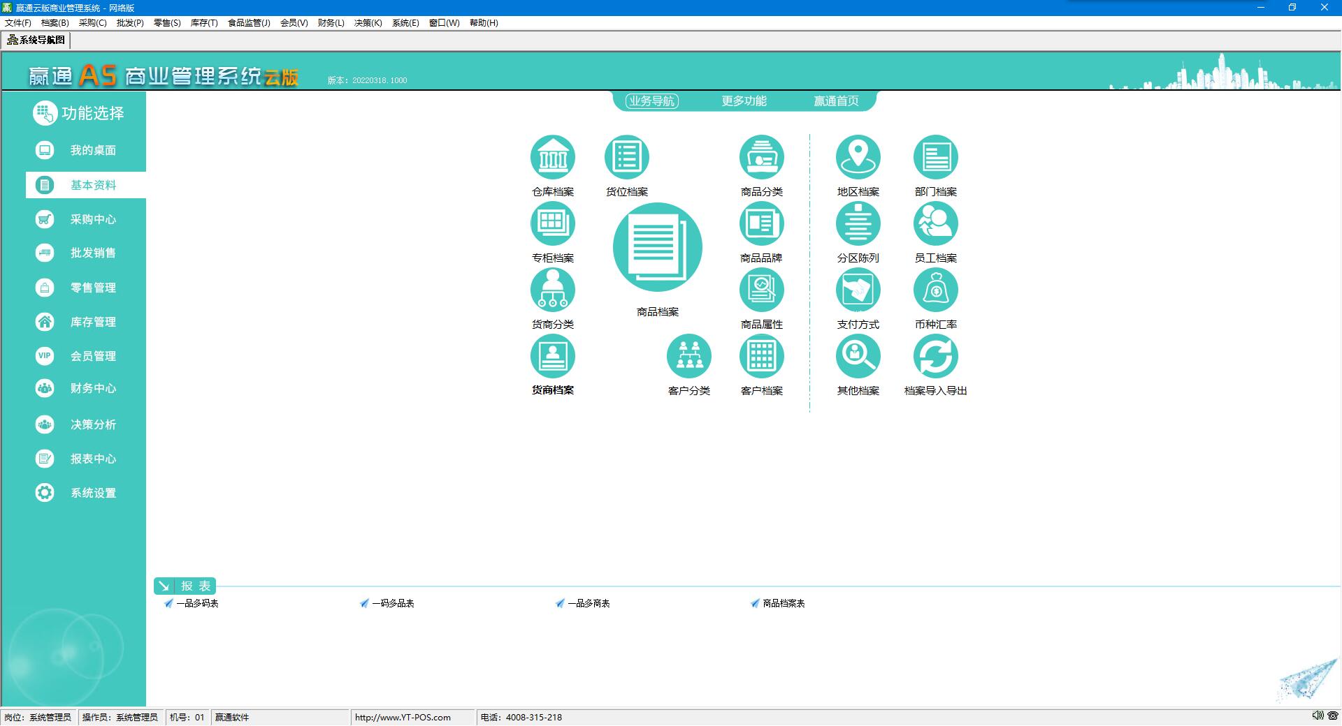 一、云端数据优化,满足全国开店需求 创建数据帐套为网络版,可以跨网跨地域使用,只要终端能上网就能用 界面清晰,美观大方、布局分区合理,使用高效,极大的增加屏幕的利用率 云商品库,新建商时时扫码后自动检查补充商品资料,前台预设多种打印格式, 单据格式预置有模板,设计更轻松,可为客户安装非预置的定制报表,后台参数分类布局